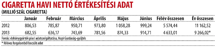 Pedig ez azt engedi feltételezni, hogy a 2011-es körülbelül 17,5-18 milliárd szálas magyar piacon a feketézés nem 7-8, hanem 10 százalék felett van. (A NAV bűnügyi elnökhelyettese szerint ez tavaly 5-6 százalék lehetett, 2004-ben pedig még 24 százalékon volt.) A rendszerből hiányzó kétmilliárd szál adóbevétel-kiesése pedig nem 23 milliárd, hanem áfával együtt jócskán 50 milliárd forint feletti − ugyanakkor ez sem kézzelfogható, hiszen nem tudni, hogy ez a kétmilliárd szál a sodrós- vagy a hagyományos piacról hiányzik, már ha a feketekereskedelemben csapódik le.