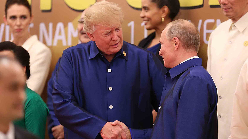 A két vezető első és eddigi egyetlen személyes hivatalos tárgyalását a G20-csoport hamburgi csúcsán ejtették meg. Akkor a találkozó amerikai területen történt meg, ezért azt most, a diplomáciai sorrendiség szerint orosz területen kellett volna megtartani.