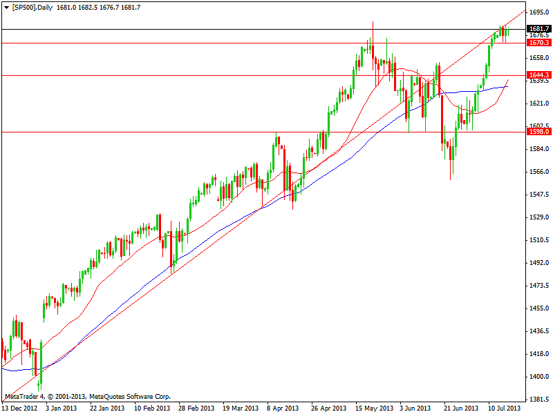 A keddi kereskedésben átmenetileg megtorpant az S&P500 emelkedése: majd az óvatos kivárás után a Fed elnökének szavai átmeneti megnyugvást hoztak a piacokra. Bár Ben Bernanke beszámolója valójában kevés újdonságot tartalmazott, így a továbbiakban az esetlegesen kedvező vállalati beszámolók-, illetve a reálgazdaság fundamentumainak javulása repíthetné új csúcsra az amerikai részvényindexet.