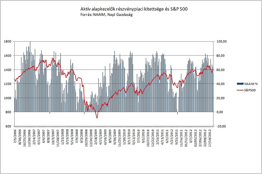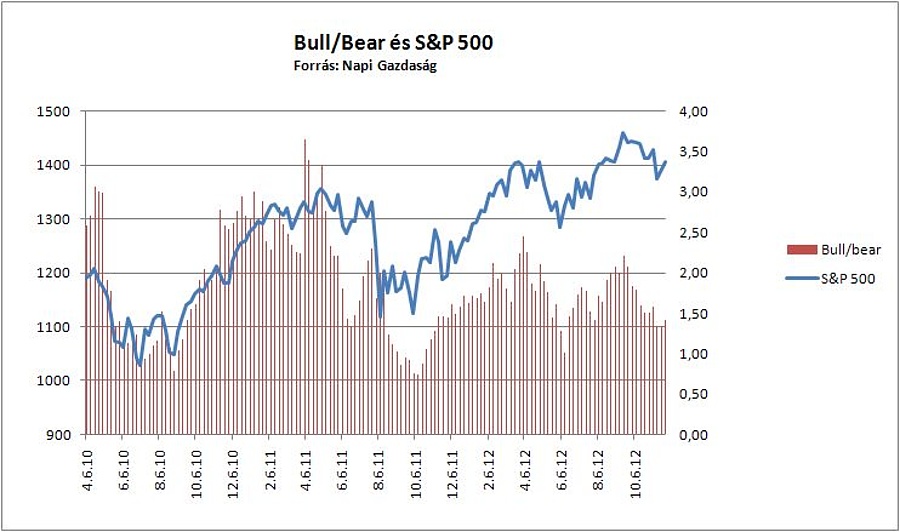 Az amerikai kisbefektetői szövetség, az AAII heti felmérése alapján az amerikai költségvetési szakadék megoldásával kapcsoltban napvilágot látott nyilatkozatok a tőzsdei áremelkedéssel karöltve megnyugtatta a két hete még elég szélsőségesen pesszimista kedélyeket. A felmérésben a következő hat hónap során emelkedő részvényárfolyamokat váró válaszadók aránya az elmúlt héten 5 százalékponttal, 40,9 százalékra emelkedett, a részvényáresést váróké több mint hat százalékponttal, 34,36 százalékra csökkent. Ezzel helyreállt a rend, többen várnak emelkedést, mint csökkenést. Amellett hogy ez a jellemző érték a felmérésben, az optimisták tábora nem mutat olyan nagy arányt, hogy abból lokális piaci csúcs közelségre lehetne következtetni, igaz, az ősz elején elért csúcsok az S&P 500-as indexben még elég távol vannak.