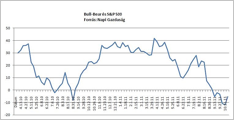 Az AAII, az amerikai kisbefektetői szövetség heti felmérésben enyhén, 39,8 százalékról 36 százalékra csökkent a következő 6 hónapban részvénypiaci áremelkedést várók aránya, míg a fél év múlva alacsonyabb árfolyamokat vizionáló befektetőké 36,4 százalékról 34,6 százalékra csökkent. A hangulat enyhe javulása így itt is érzékelhető, a bull/bear arány, különösen annak négyhetes átlaga ebben a felmérésben is alacsony szinten van, a hangulati mutató csökkenő trendjét egyelőre nem törte át felfelé.