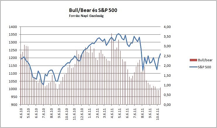 Ezzel a felmérés bull/bear hányadosa 0,87-re emelkedett. Ez eléggé alacsony érték ahhoz, hogy a félelem faláról lehessen beszélni a piacon, ami sokak szerint szükséges az árak tartós emelkedéséhez. Ugyanakkor elmarad már azoktól a mélypontoktól, amelyet az elmúlt két hétben lehetett tapasztalni, s amelyek lokális piaci mélypontokra szoktak jellemzőek lenni.