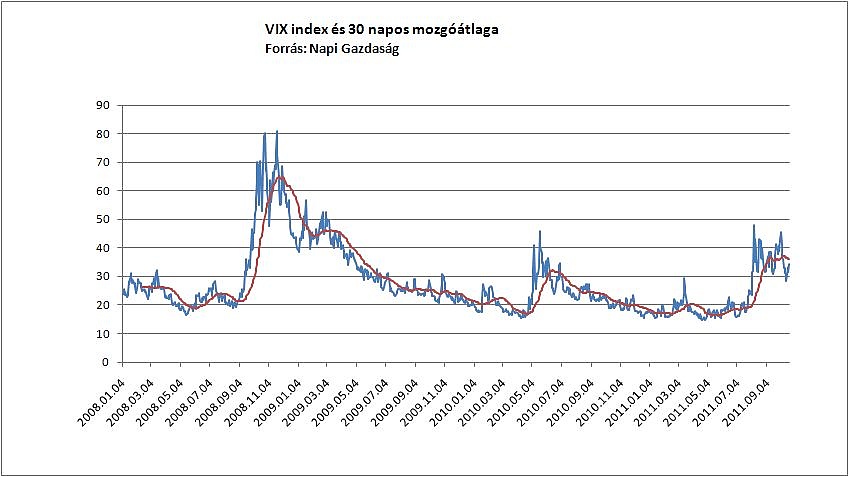Az S&P 500-as indextől várt volatilitást jelző VIX index, a "félelem index" mindössze egy napra volt képes az erős támaszként szolgáló 30 pontos érték alá csökkenni, a tartósabb, kiegyensúlyozott emelkedés megindulásához szükség lenne ahhoz, hogy a mutató e-szint alatt ragadjon.